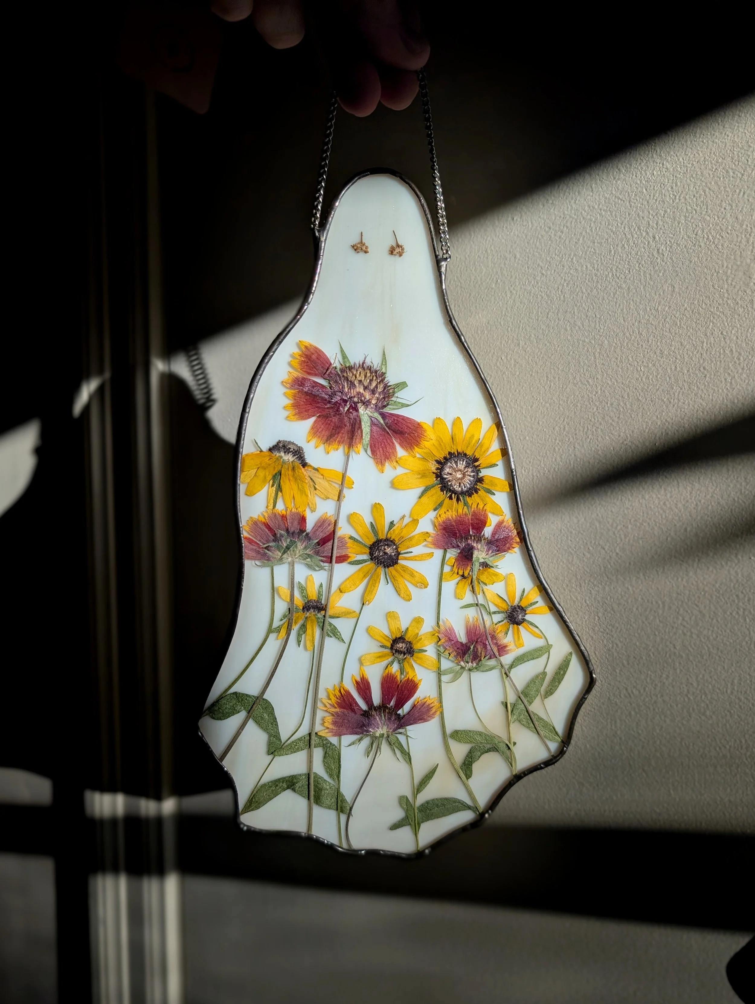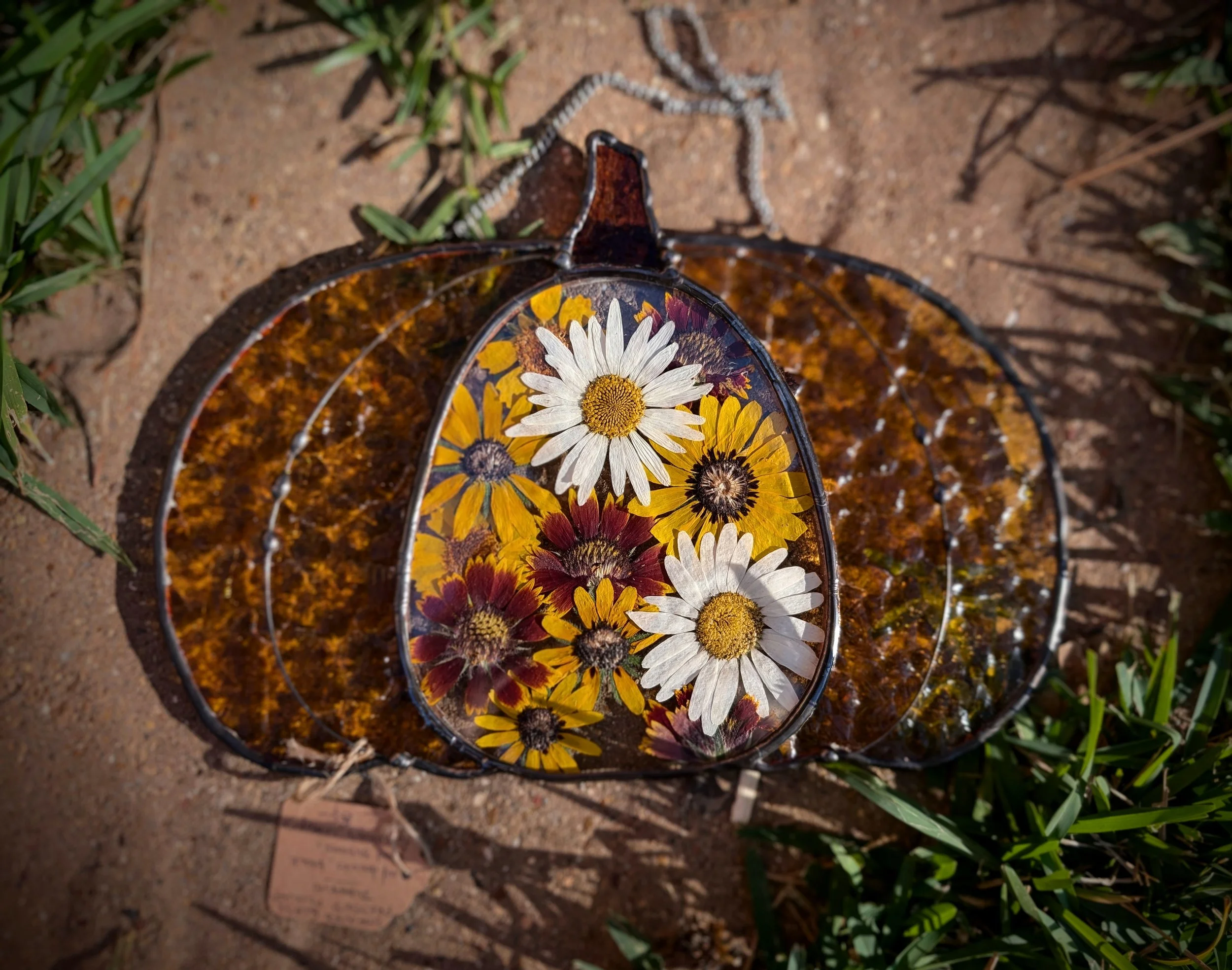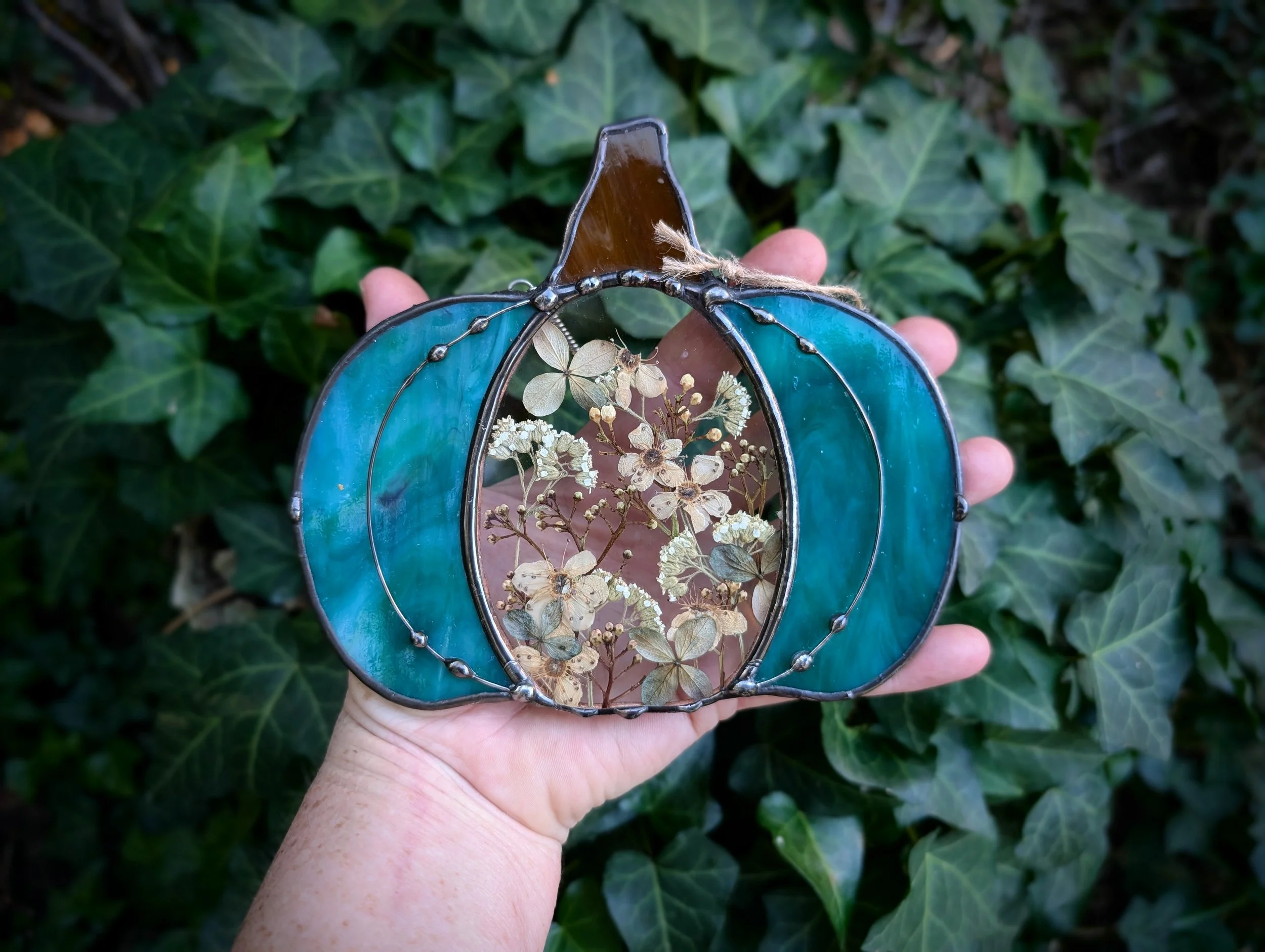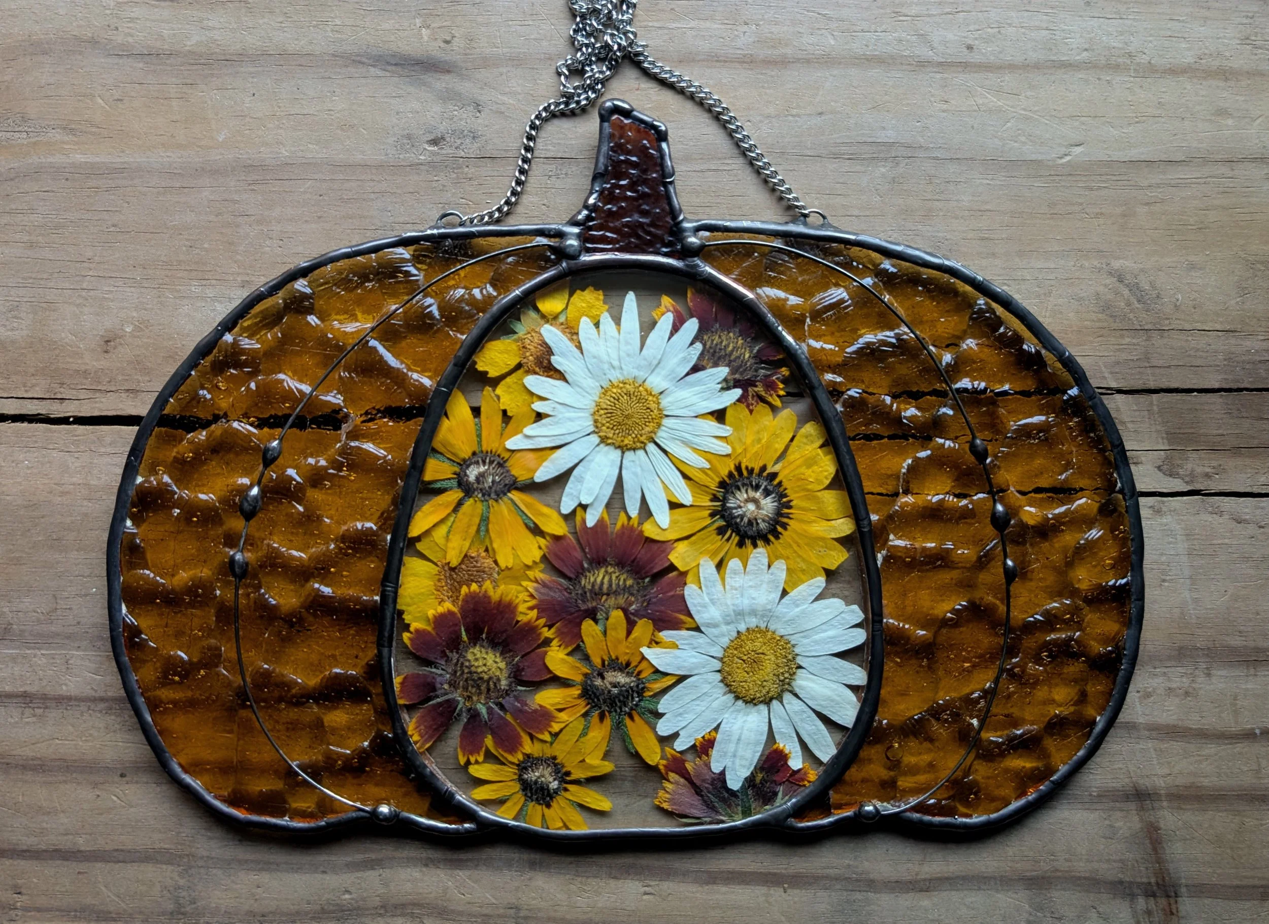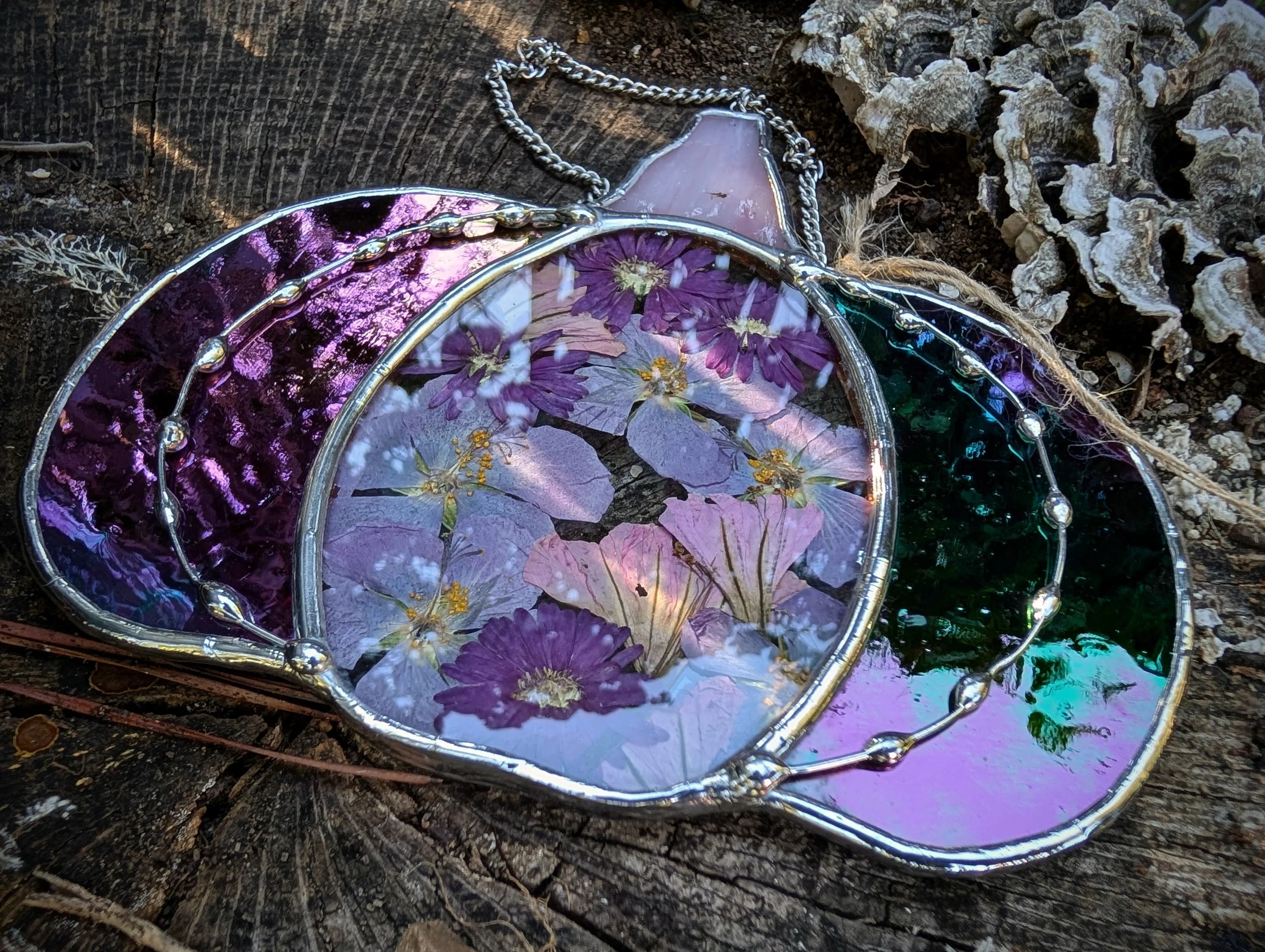 Categories: All Candle Holders Plant Stakes NightLights Holiday Decor Mirrors Jewelry Wall Decor Chimes and Danglies Floral Suncatchers Jewelry Organization All Candle Holders Plant Stakes NightLights Holiday Decor Mirrors Jewelry Wall Decor Chimes and Danglies Floral Suncatchers Jewelry Organization Stained Glass Ghost with Wildflowers $70.00 Stained Glass Floral Pumpkin - Large $80.00 Stained Glass Floral Pumpkin - Teel $50.00 Stained Glass Floral Pumpkin - Purple and Pink $50.00 Stained Glass Floral Pumpkin - Violet $50.00 Stained Glass Framed Candle Sconce/Hanging Shelf $100.00 Sold Out Pressed Flower Stained Glass Candle Holder - Rainbow Hydrangea $55.00 Stained Glass Flower Nightlights $45.00 Mirror Based Stained Glass Tray with Queen Anne's Lace $80.00 Suncatcher - "Weeds" framed in Stained Glass $95.00 Ring Dish - Mauve stained glass with Viburnum buds and Salsify seeds $55.00 Adjustable Necklace - Fiery Skipper Butterfly Wings in Double Clear Glass $60.00