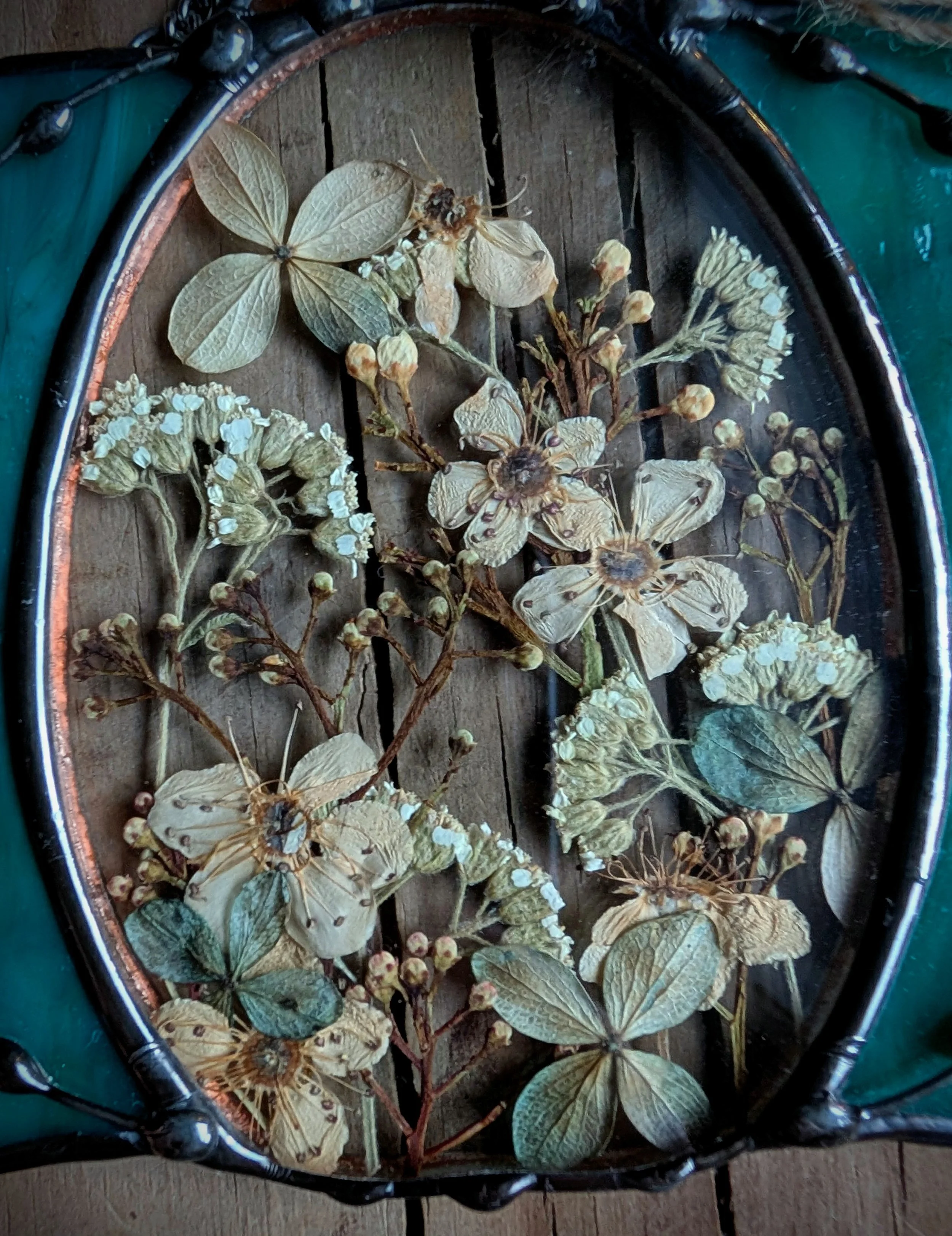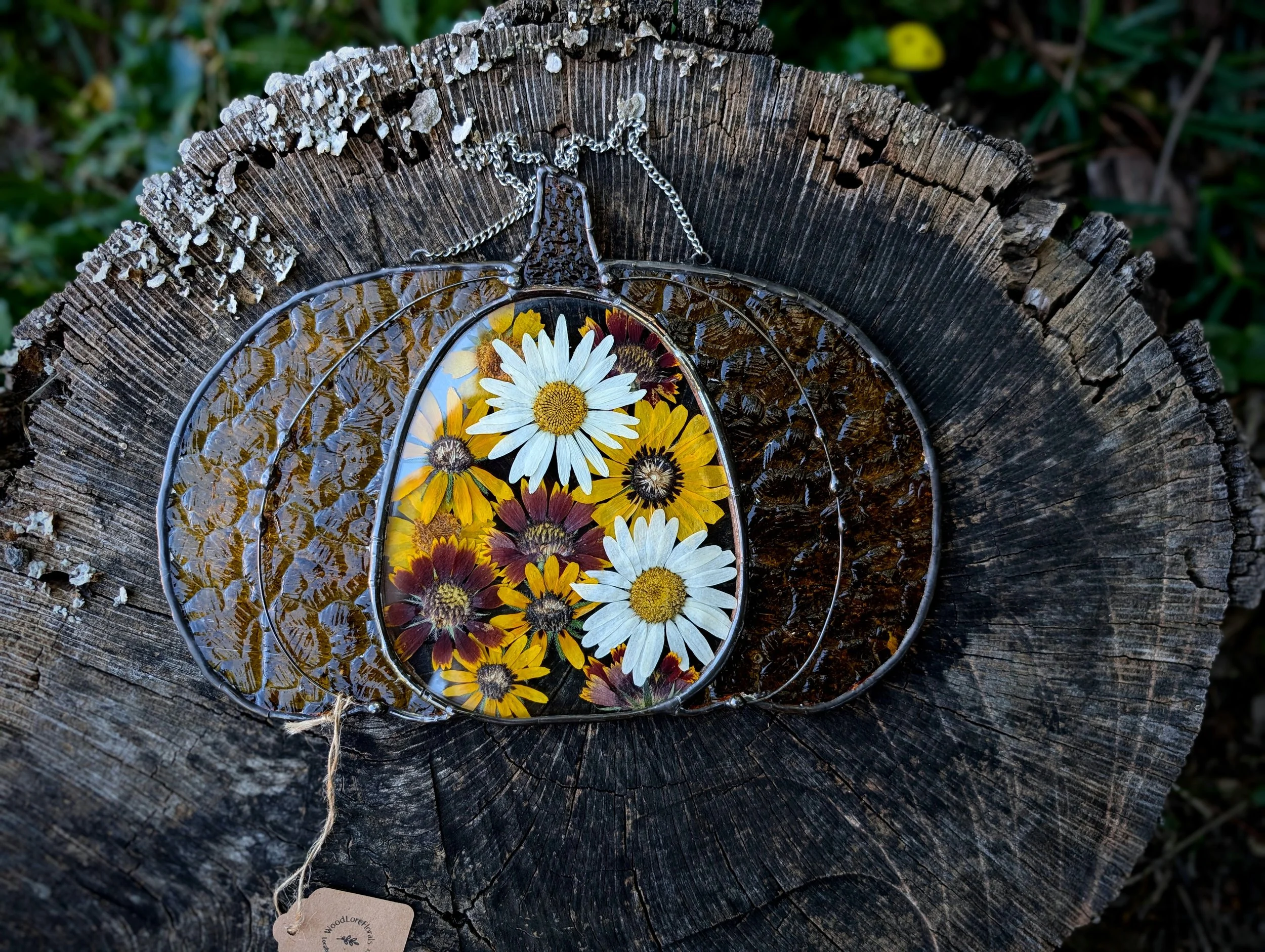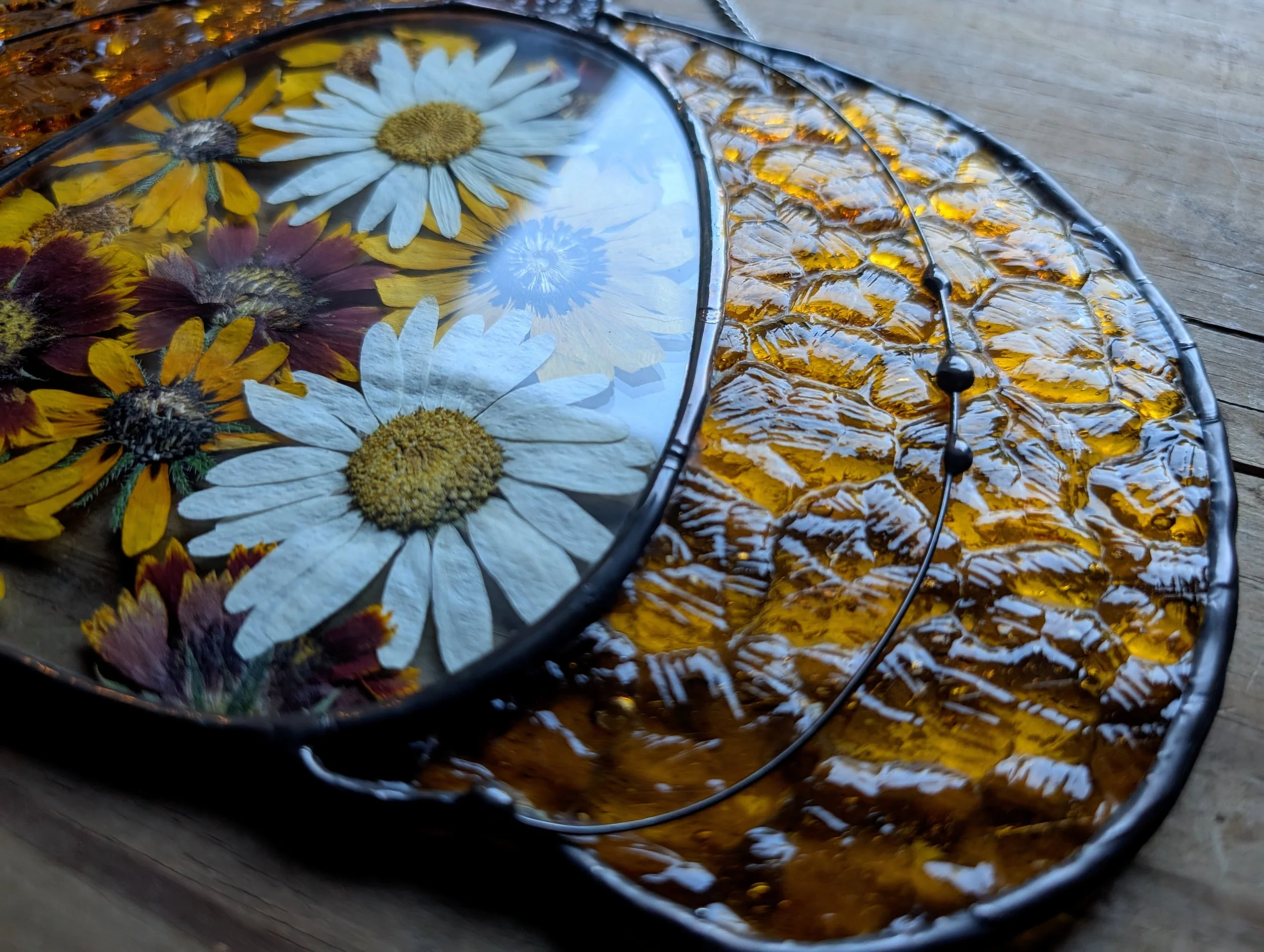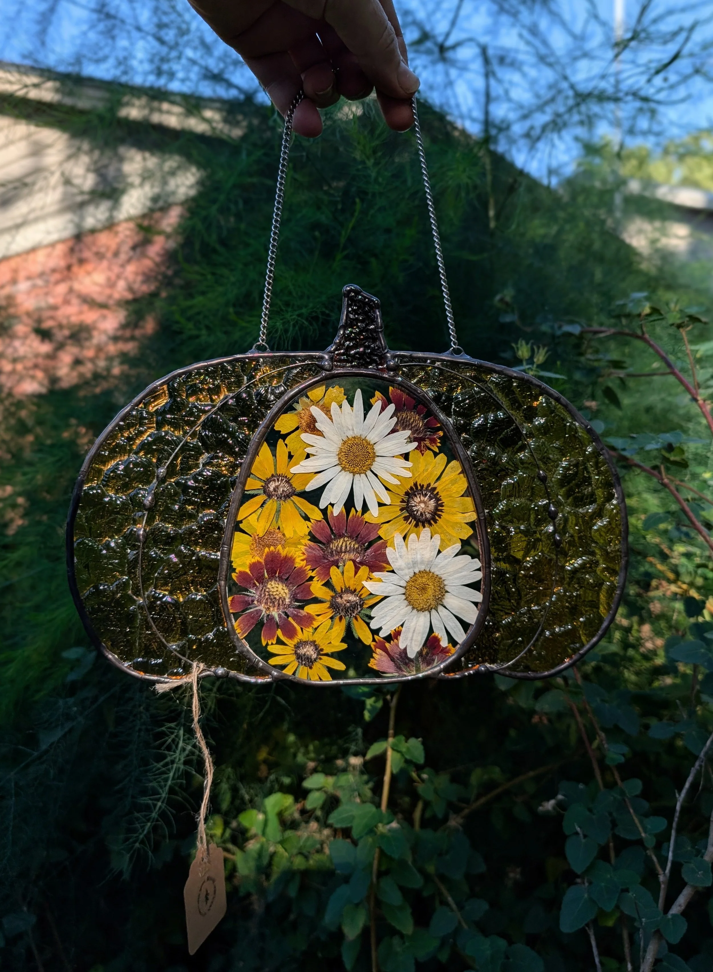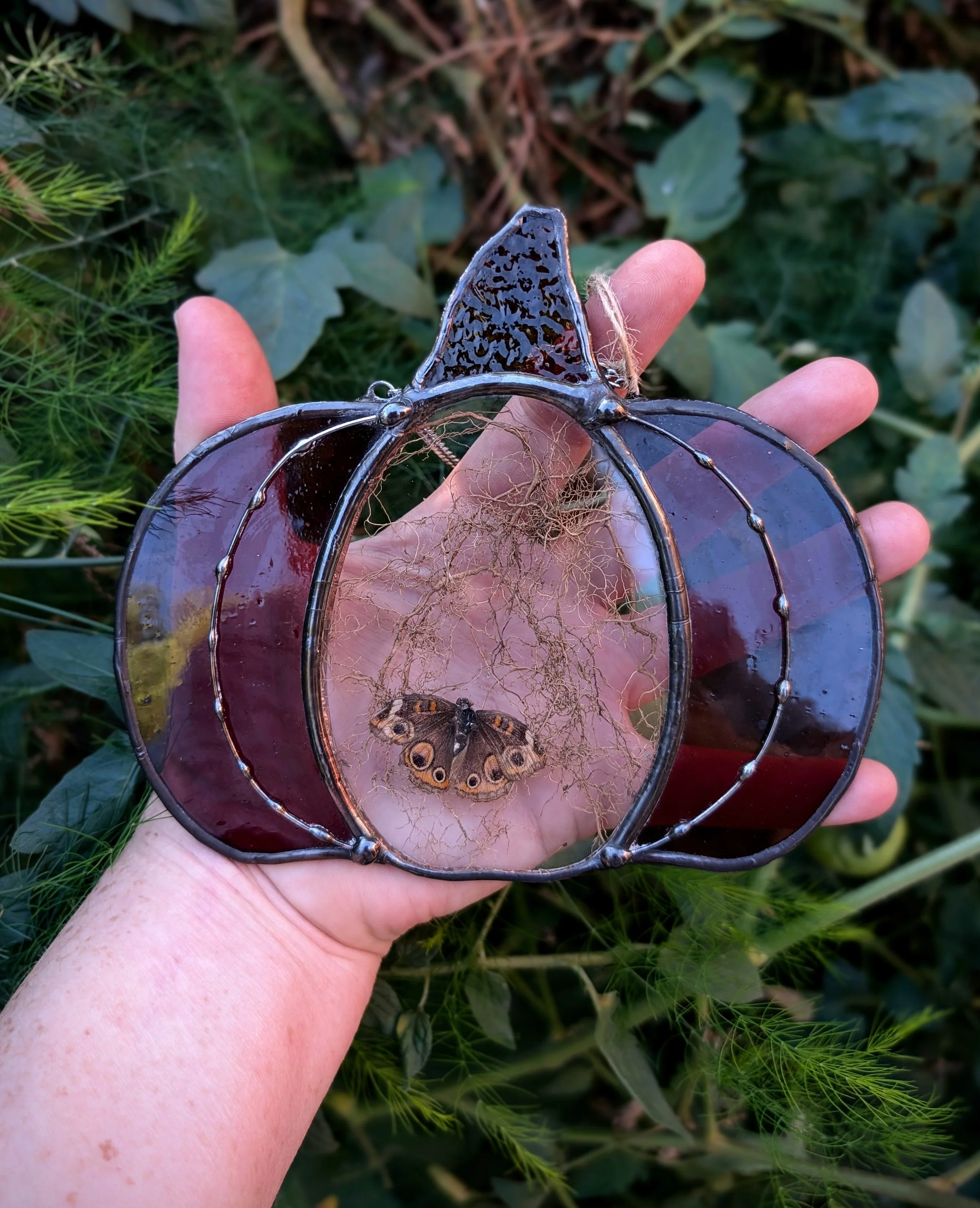 Categories: All Candle Holders Plant Stakes NightLights Holiday Decor Mirrors Jewelry Wall Decor Chimes and Danglies Floral Suncatchers Jewelry Organization All Candle Holders Plant Stakes NightLights Holiday Decor Mirrors Jewelry Wall Decor Chimes and Danglies Floral Suncatchers Jewelry Organization Stained Glass Ghost with Wildflowers $70.00 Stained Glass Floral Pumpkin - Large $80.00 Stained Glass Floral Pumpkin - Teel $50.00 Stained Glass Floral Pumpkin - Purple and Pink $50.00 Stained Glass Floral Pumpkin - Violet $50.00 Stained Glass Framed Candle Sconce/Hanging Shelf $100.00 Sold Out Pressed Flower Stained Glass Candle Holder - Rainbow Hydrangea $55.00 Stained Glass Flower Nightlights $45.00 Mirror Based Stained Glass Tray with Queen Anne's Lace $80.00 Suncatcher - "Weeds" framed in Stained Glass $95.00 Ring Dish - Mauve stained glass with Viburnum buds and Salsify seeds $55.00 Adjustable Necklace - Fiery Skipper Butterfly Wings in Double Clear Glass $60.00