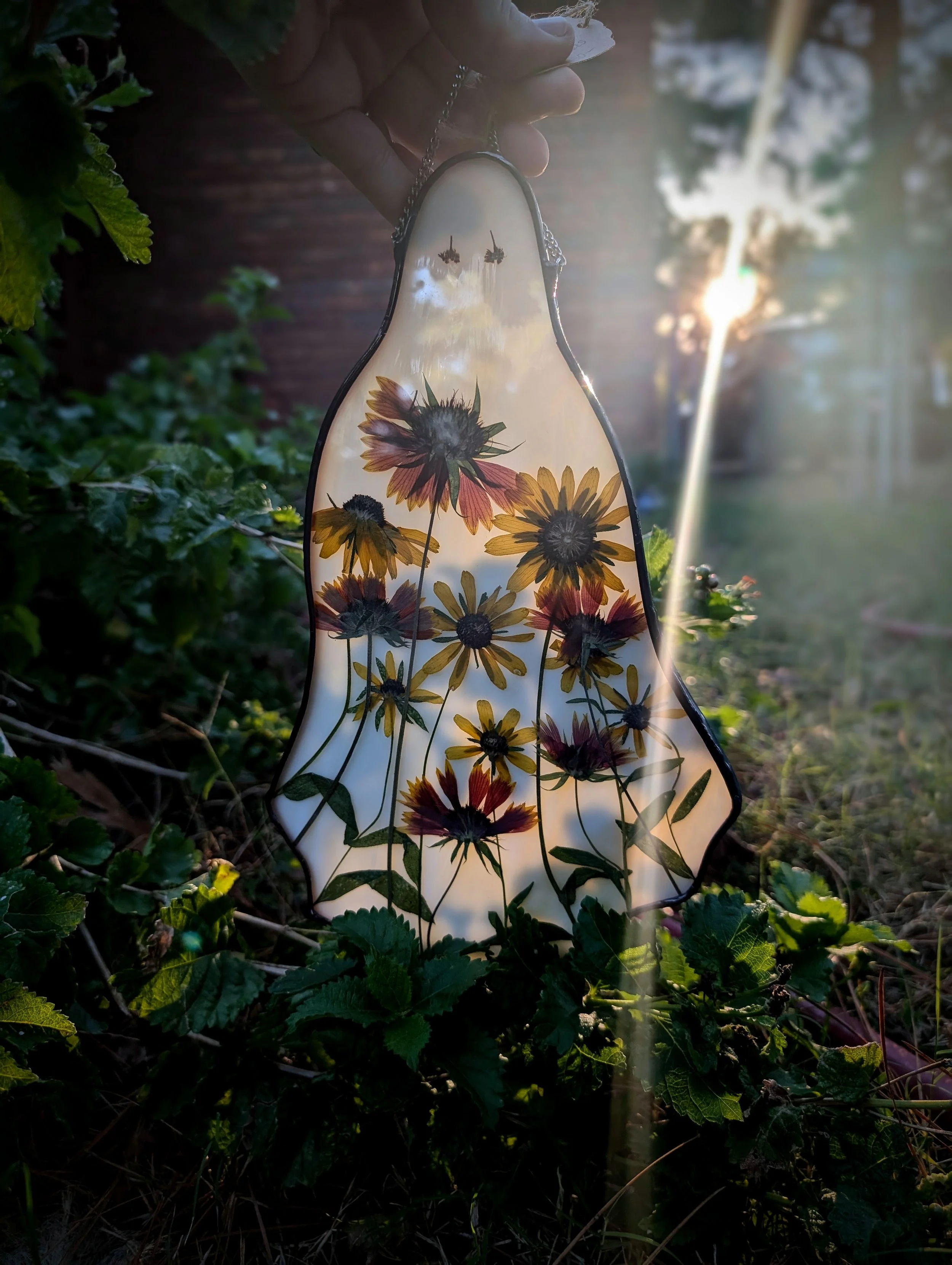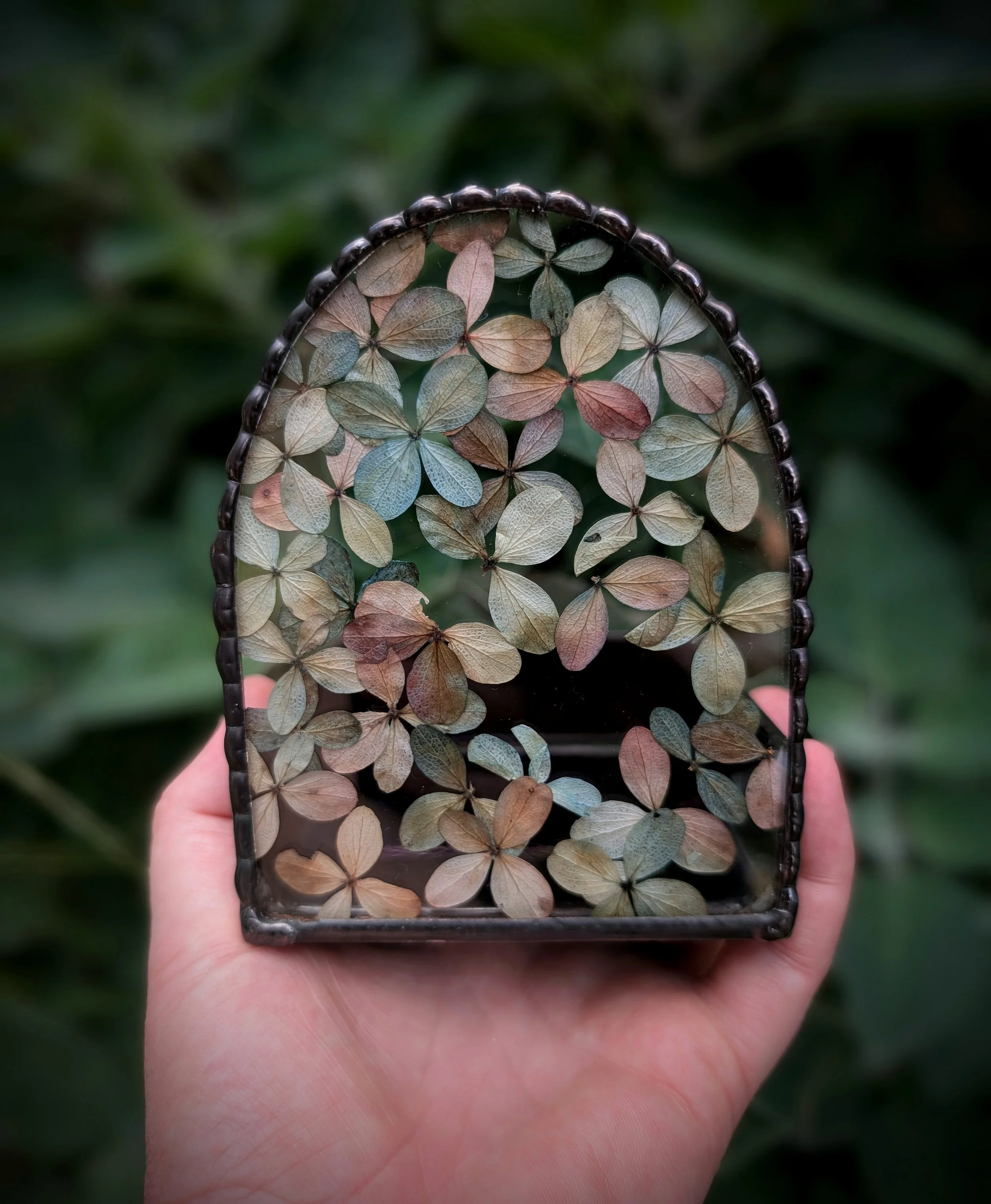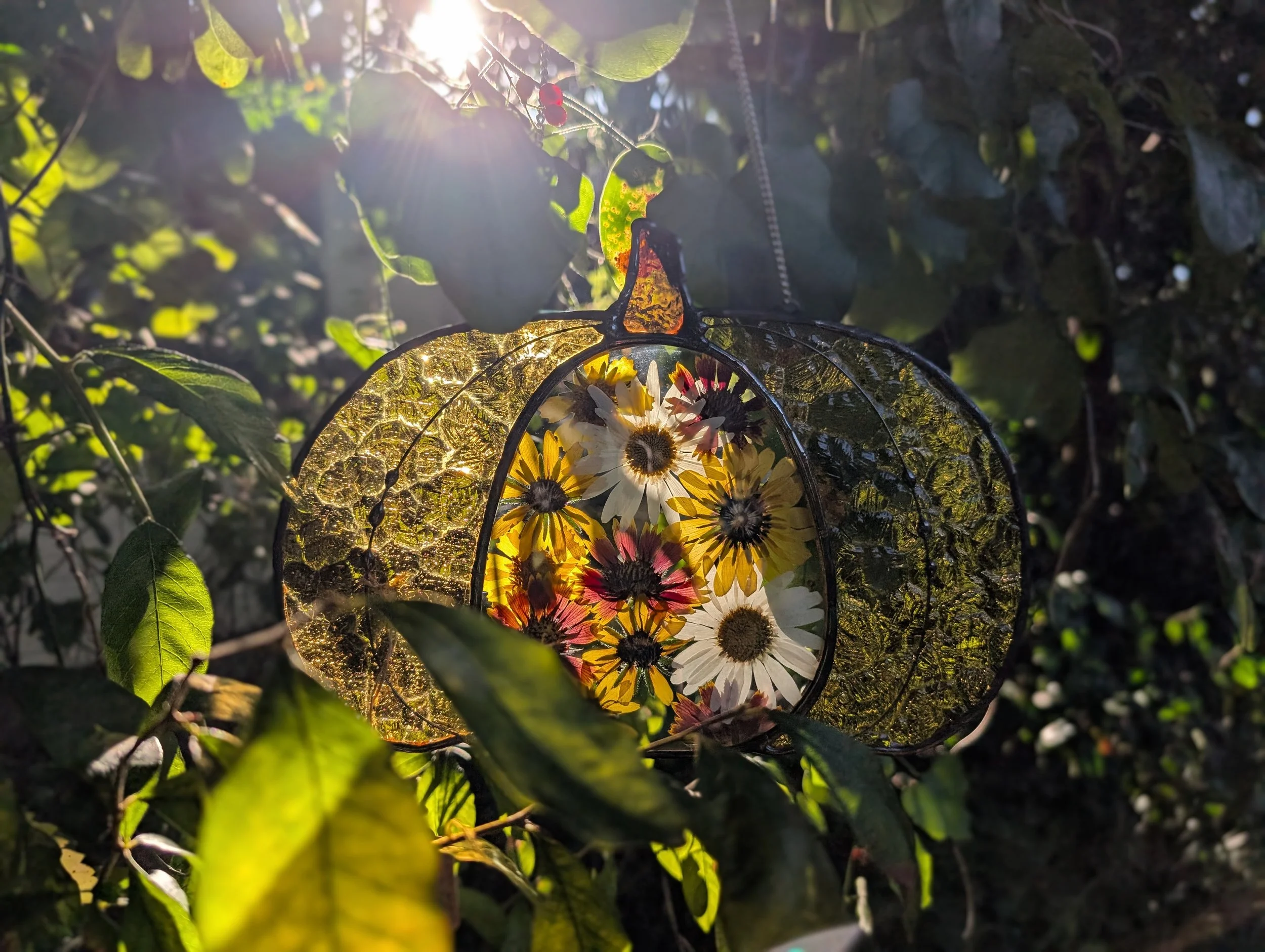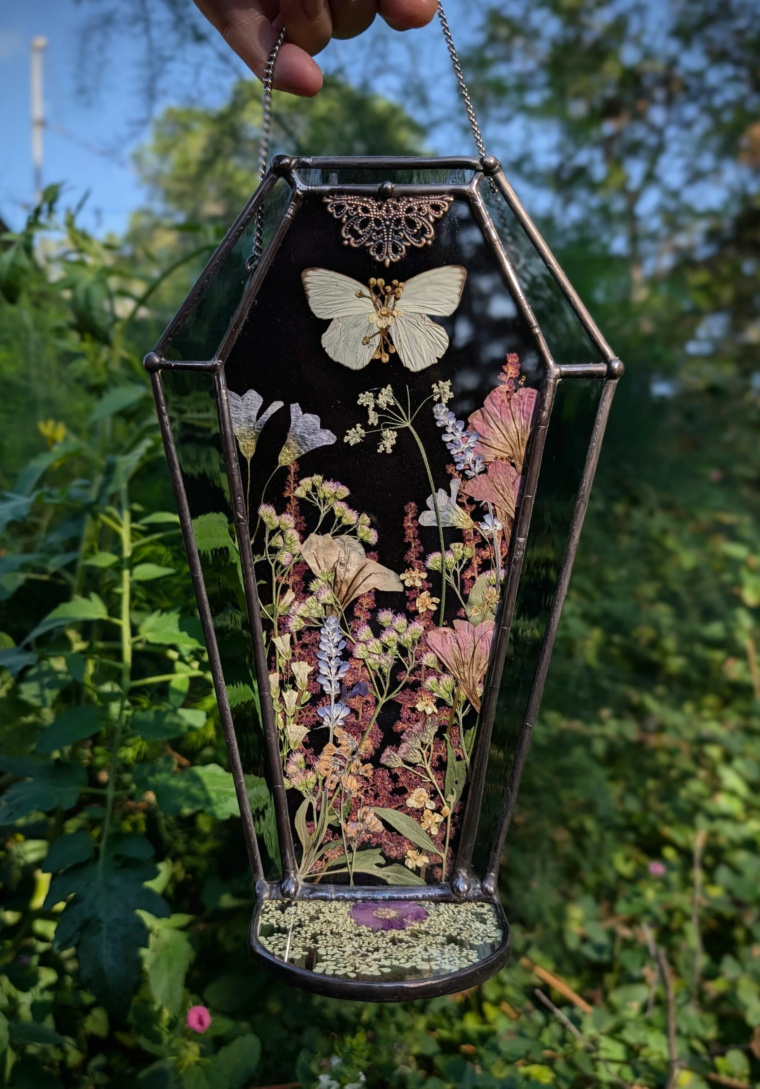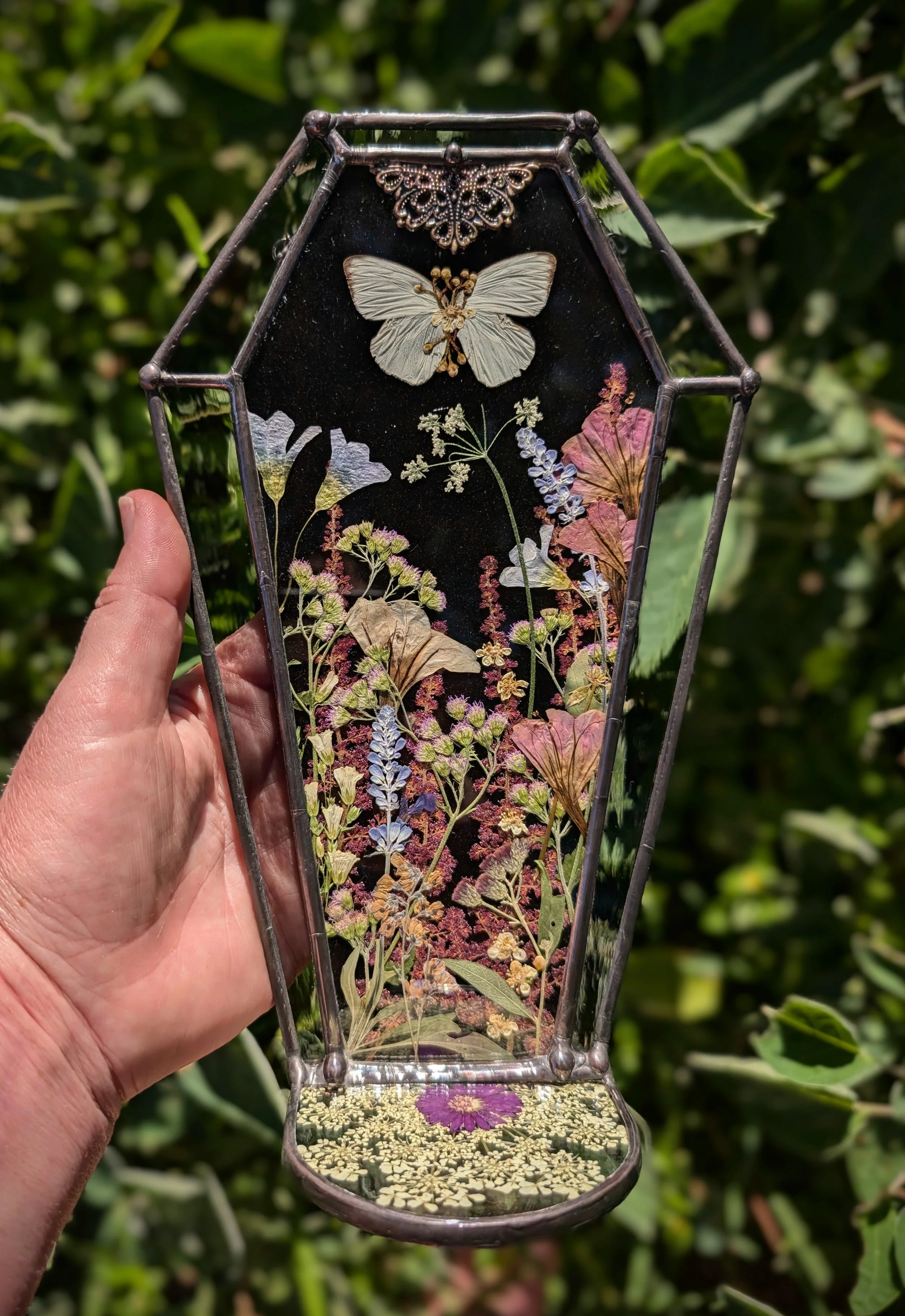 Categories: All Candle Holders Plant Stakes NightLights Holiday Decor Mirrors Jewelry Wall Decor Chimes and Danglies Floral Suncatchers Jewelry Organization All Candle Holders Plant Stakes NightLights Holiday Decor Mirrors Jewelry Wall Decor Chimes and Danglies Floral Suncatchers Jewelry Organization Stained Glass Ghost with Wildflowers $70.00 Stained Glass Floral Pumpkin - Large $80.00 Stained Glass Floral Pumpkin - Teel $50.00 Stained Glass Floral Pumpkin - Purple and Pink $50.00 Stained Glass Floral Pumpkin - Violet $50.00 Stained Glass Framed Candle Sconce/Hanging Shelf $100.00 Sold Out Pressed Flower Stained Glass Candle Holder - Rainbow Hydrangea $55.00 Stained Glass Flower Nightlights $45.00 Mirror Based Stained Glass Tray with Queen Anne's Lace $80.00 Suncatcher - "Weeds" framed in Stained Glass $95.00 Ring Dish - Mauve stained glass with Viburnum buds and Salsify seeds $55.00 Adjustable Necklace - Fiery Skipper Butterfly Wings in Double Clear Glass $60.00