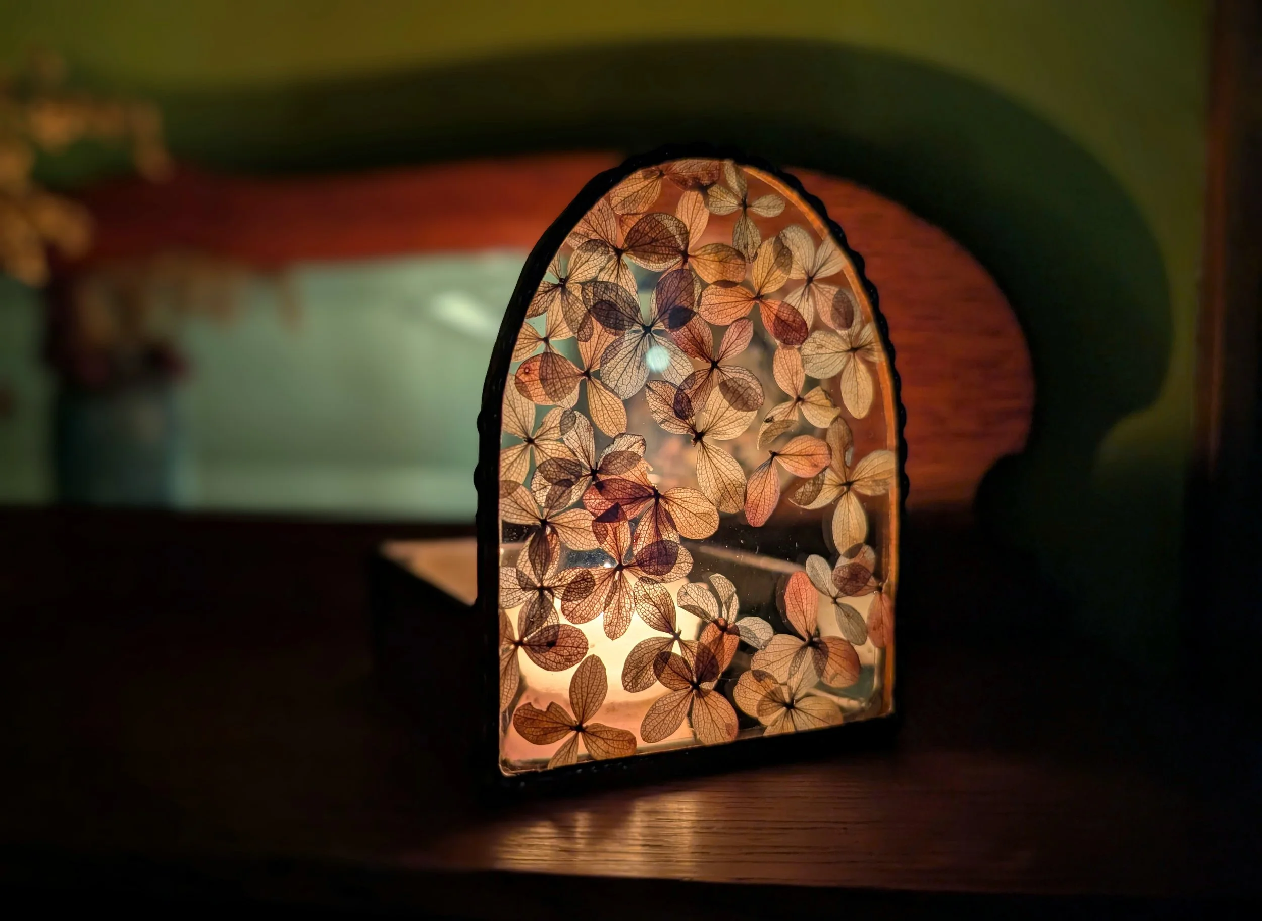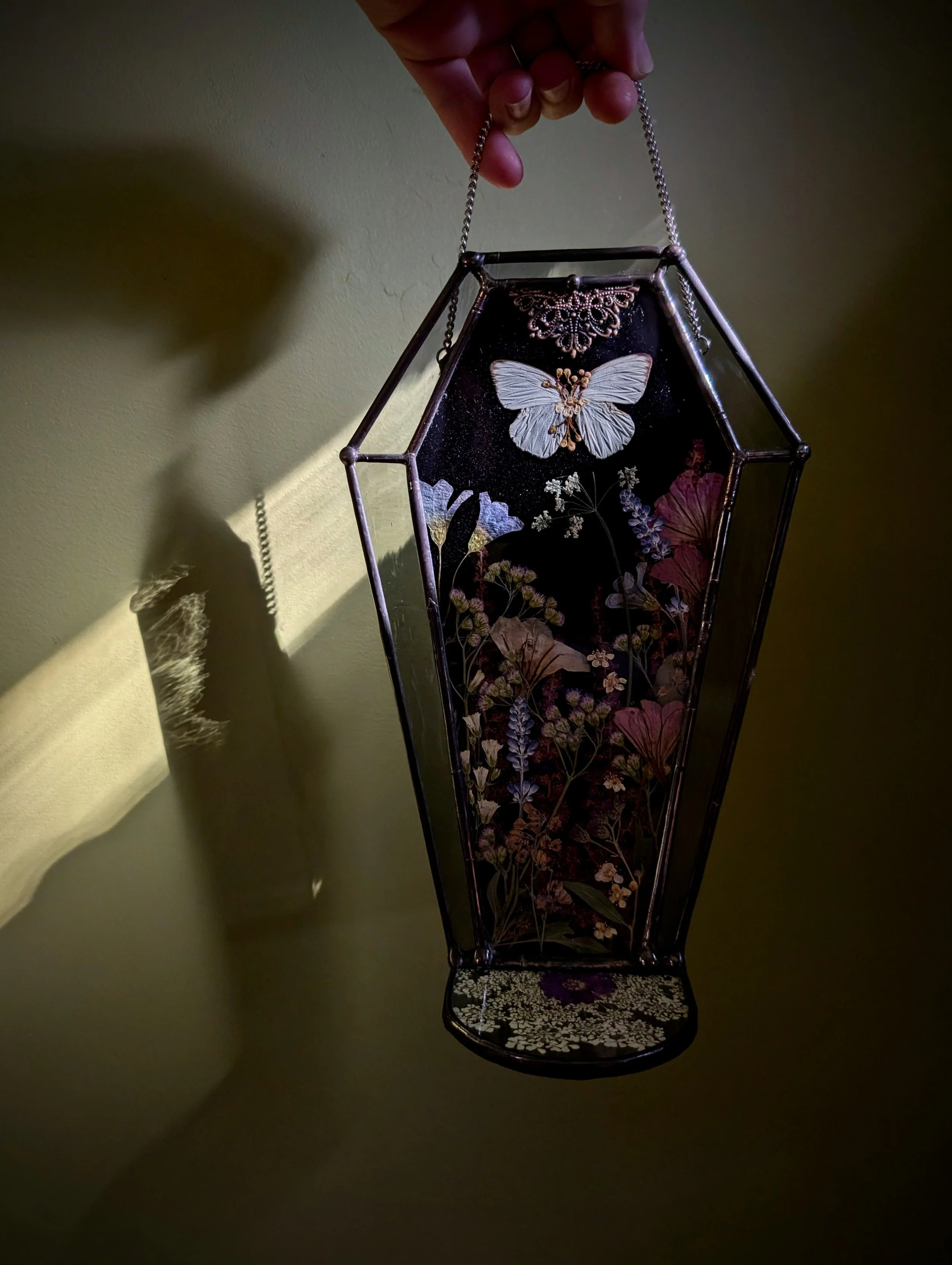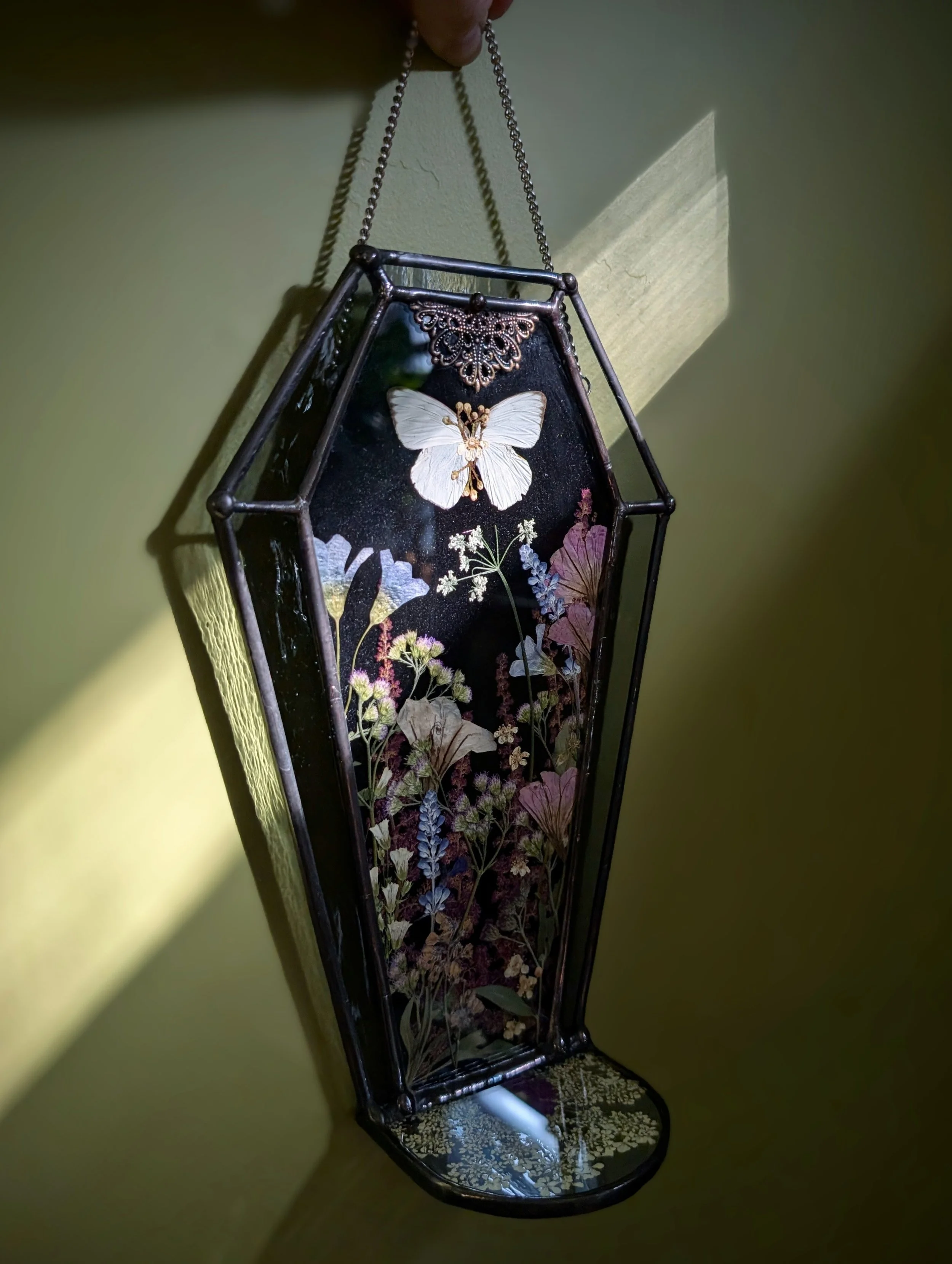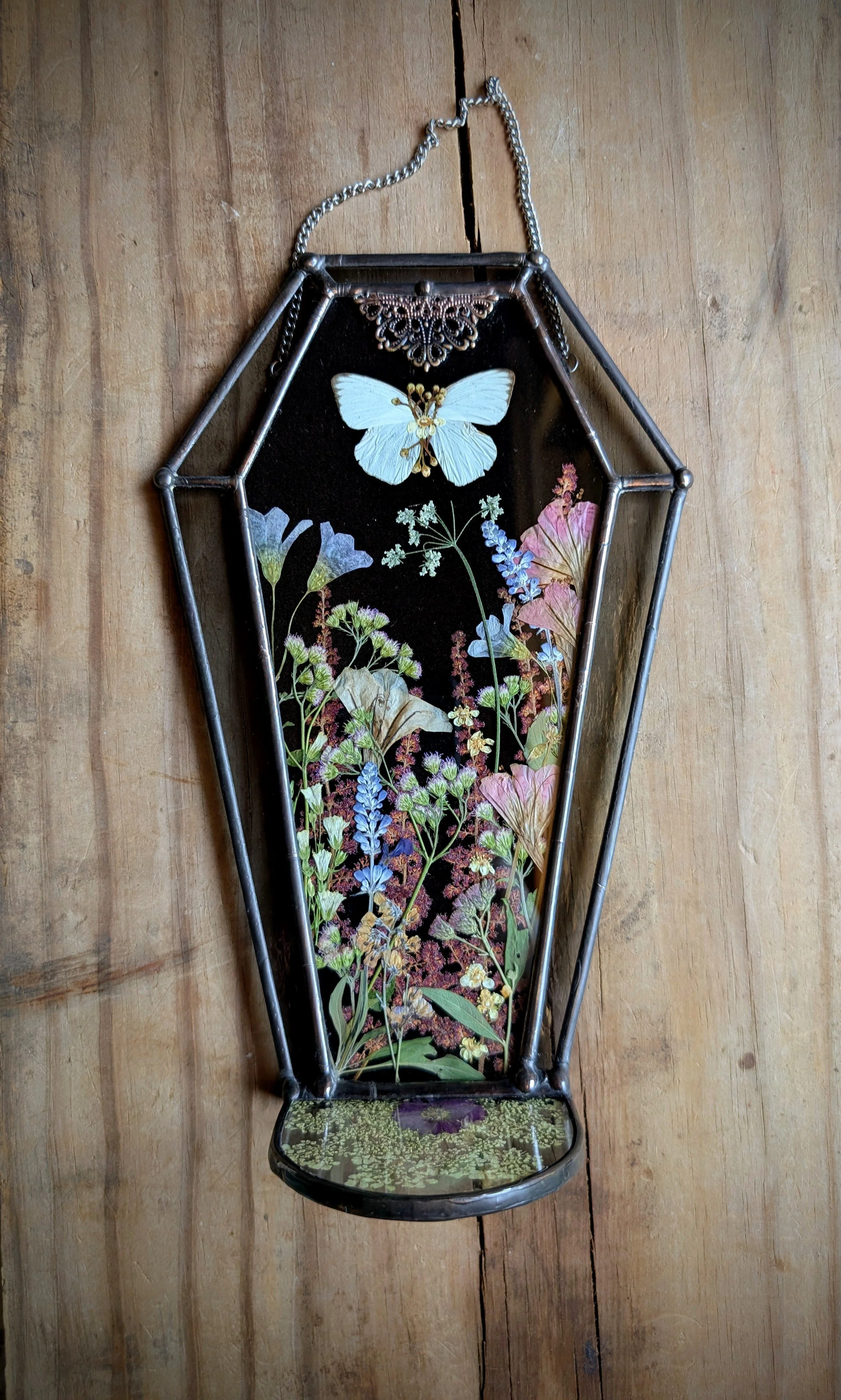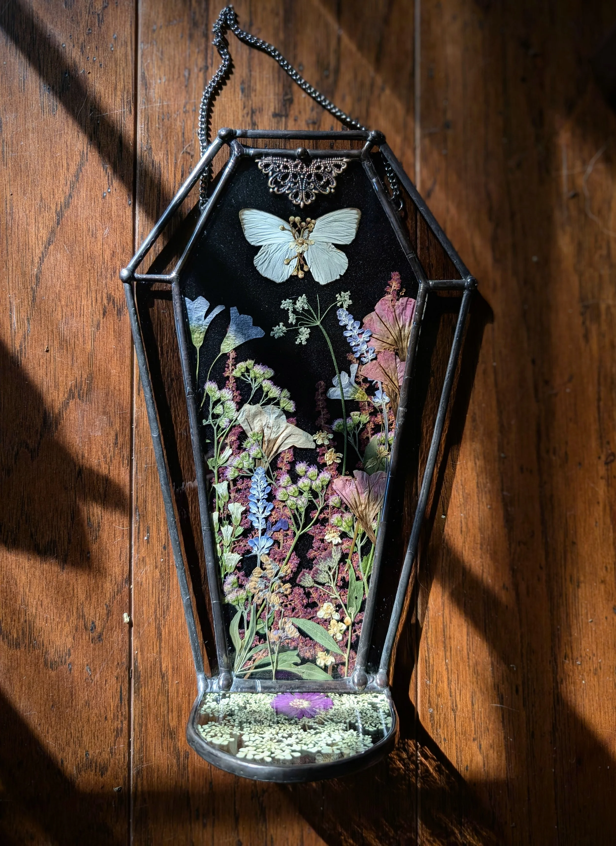 Categories: All Candle Holders Plant Stakes NightLights Holiday Decor Mirrors Jewelry Wall Decor Chimes and Danglies Floral Suncatchers Jewelry Organization All Candle Holders Plant Stakes NightLights Holiday Decor Mirrors Jewelry Wall Decor Chimes and Danglies Floral Suncatchers Jewelry Organization Stained Glass Ghost with Wildflowers $70.00 Stained Glass Floral Pumpkin - Large $80.00 Stained Glass Floral Pumpkin - Teel $50.00 Stained Glass Floral Pumpkin - Purple and Pink $50.00 Stained Glass Floral Pumpkin - Violet $50.00 Stained Glass Framed Candle Sconce/Hanging Shelf $100.00 Sold Out Pressed Flower Stained Glass Candle Holder - Rainbow Hydrangea $55.00 Stained Glass Flower Nightlights $45.00 Mirror Based Stained Glass Tray with Queen Anne's Lace $80.00 Suncatcher - "Weeds" framed in Stained Glass $95.00 Ring Dish - Mauve stained glass with Viburnum buds and Salsify seeds $55.00 Adjustable Necklace - Fiery Skipper Butterfly Wings in Double Clear Glass $60.00